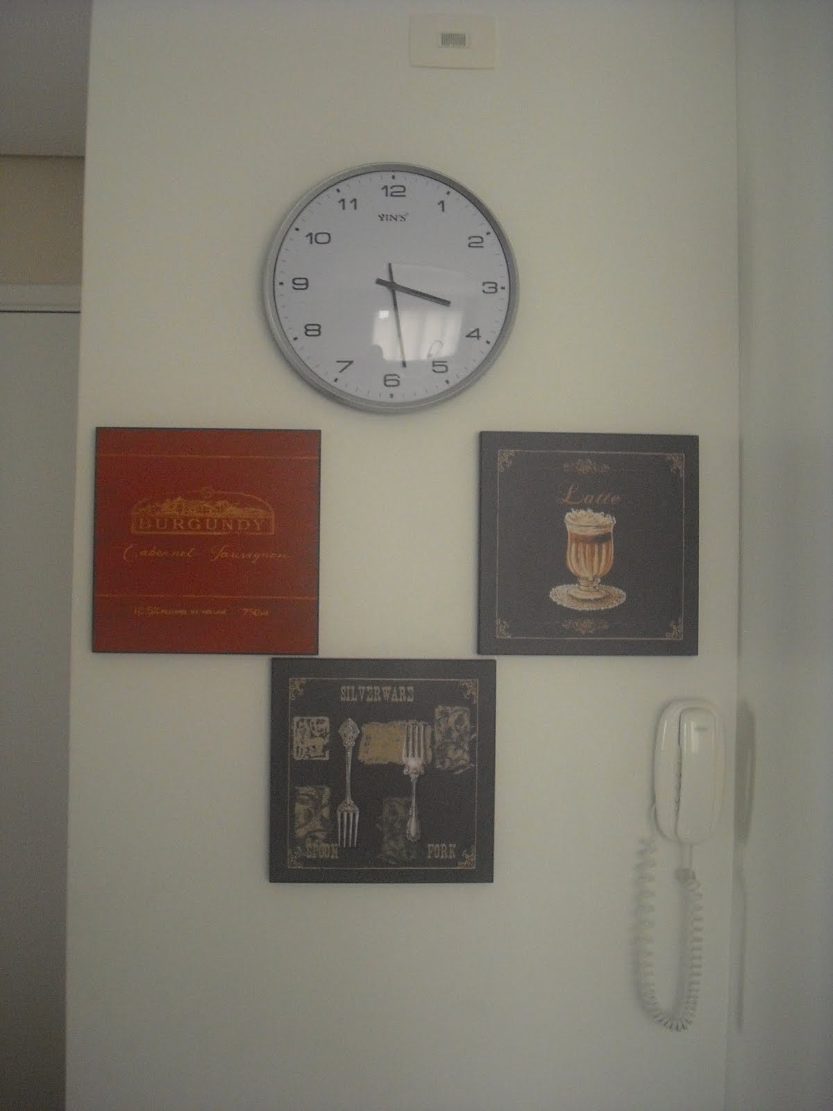 nesta foto ao fundo do lado esquerdo fiz um arranjo de 03 quadros e um relogio achei que ficou bacana ...o que vocês acham?