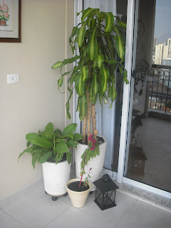 os vasos e as plantas trouxe da minha antiga casa e comprei esta lanterna para fazer um charme...
