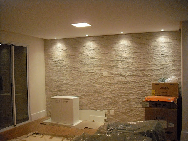 Bom dia meninas , hoje vou mostrar a minha parede de pedras , não é nem canjiquinha e nem São Tomé . Quando optamos por este tipo de revestimento começamos a procurar no mercado ,mas nos deparamos com um problema, todas as pedras eram irregulares e precisaríamos ter um pedreiro especializado neste tipo de colocação , como temos o Edilson e ele é otimo mas ficou com medo da colocação desta pedra fomos em busca de outra alternativa e encontramos esta pedra . Se vocês perceberam bem elas são todas do mesmo tamanho e isso facilitou a colocação....eu adorei o resultado bjs e otimo final de semana a todas ...